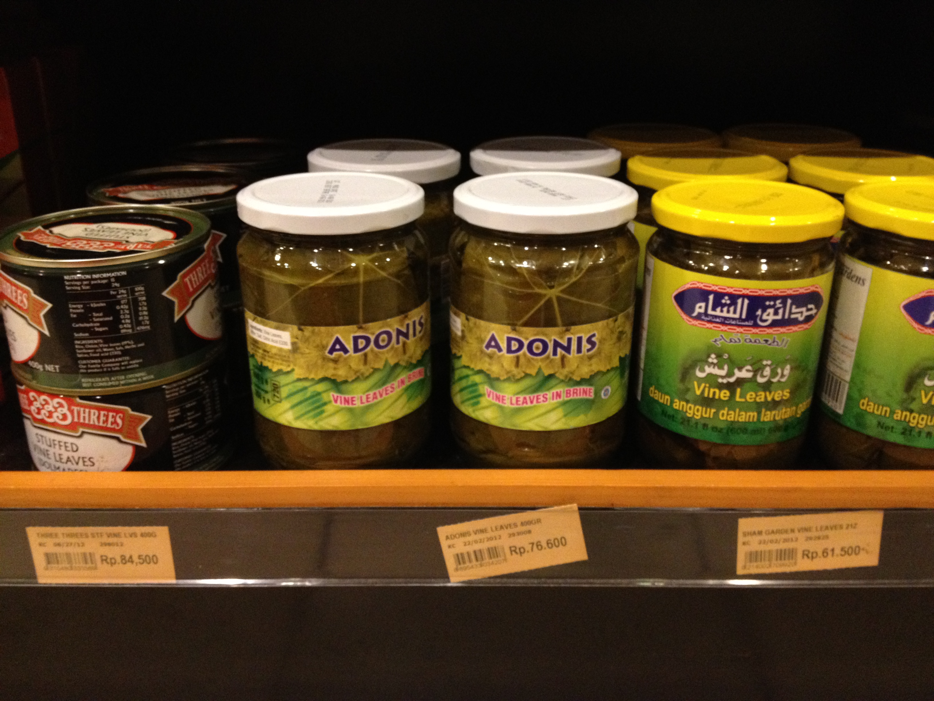 ASMA YAPRAGI: eskiden sadece Meditarrenaen markette bulunurdu ama simdi sosyete marketlerinde de bulunuyor. Hem de iki marka var artik. Bizim klasik Arap markamiz Durra ve Avusturalya’dan bir Yunan markasi. Yandaki siyah kutular da zeytinyagli sarma 🙂
