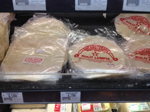 1) Kulit Lumpia: Halkin kullandigi spring roll yufkasi. Son derece tipsiz gorunse ve bizim yufkalardan cok daha kucuk olsa da, orjinale en yakin borek lezzetini veren yufka bu. Bizim yufkalardan biraz daha kuru ve tamamen tuzsuz oldugu icin, boregi yaparken kullandiginiz sosa biraz tuz katip, sosu normalden daha fazla sutlu ve yagli yapmaya dikkat edin. Bu yufkanin en zorlu kismi, marketlerde yufkayi bulmak. Tofularin, islak noodle’larin oldugu bolumde satiliyor. Iyice aramadan bulmak zor, iyi bakin, bulamazsaniz satis gorevlisine “kulit lumpia” diye sorun.