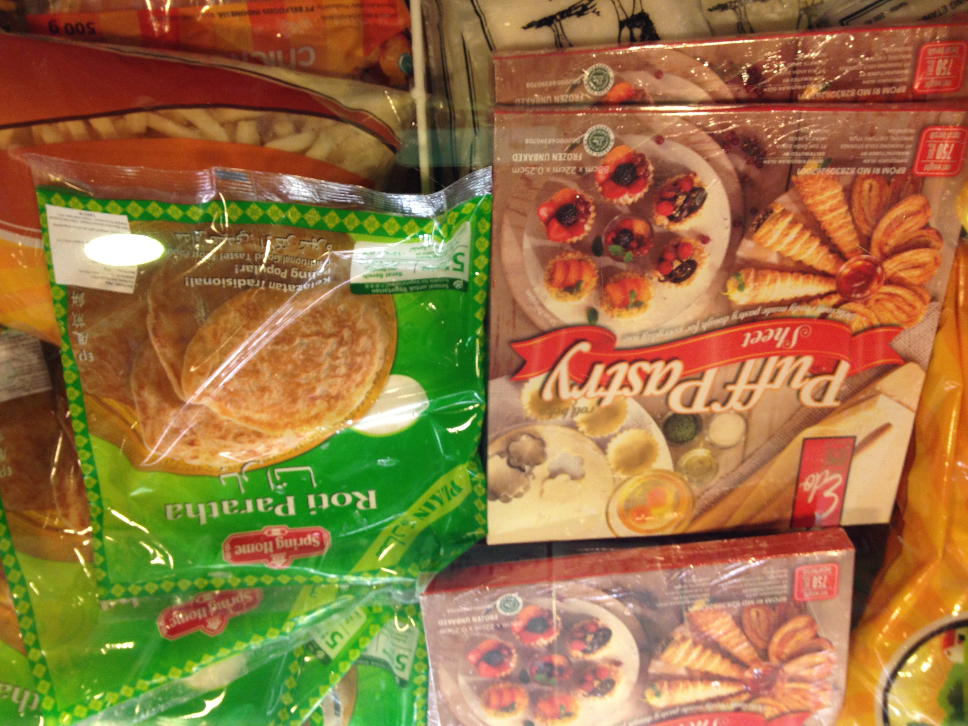 4) Milfoy: alisik oldugumuz paketlerden buyuk sekilde satiliyor burada milfoy. Gene sosyetik marketlere, donmus urun reyonlarina bakmaniz lazim. Bir de Pondok Indah Carrefour’da ekmek reyonunun en basinda, plastik kutuda kendi yaptiklari milfoyleri taze olarak satiyorlar. Rastlarsaniz o, bu hazirlardan daha guzel ama her zaman yolu dusurmek, yol duserse de bulmak mumkun olmayabiliyor.