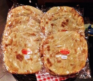 Durumler icin tortilla diye satilan ekmekleri kullaniyoruz. Bunlarin donmus olarak misir unundan yapilanlari, pismis olarak bugday unundan yapilanlari sosyete marketlerinde mevcut. Meksika tarzi olanlar biraz kalinca ama yine de durumler icin ideal. Bir de Kemang’daki Chef’s Kitchen adli pastanenin kendi yaptigi tortilla ekmegi varki o daha ince, daha az pismis. Iste bunu lahmacun ve gozleme yapmak icin kullanabilirsiniz. Ikisi de bu ekmekle harika oluyor. Bu ekmegi buldugunuz surece elinizde hamur acmaya gerek yok. Kemchicks ve Hero’da nadir olarak bulunabiliyor, ancak Chef’s Kitchen’a bir gun onceden siparis verip istediginiz miktarda hazirlatabilirsiniz. Resimde, pizza tabanlarinin yaninda “pita bread” diye satilanlar. Chef’s Kitchen: Jl. Kemang Raya No. 19 C, Jakarta – (021) 719-8866